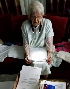 Meet Ethel Praznik, our 100-year-old honorary staff member who volunteered to help stuff envelopes for the recent FlagPOST mailing.
